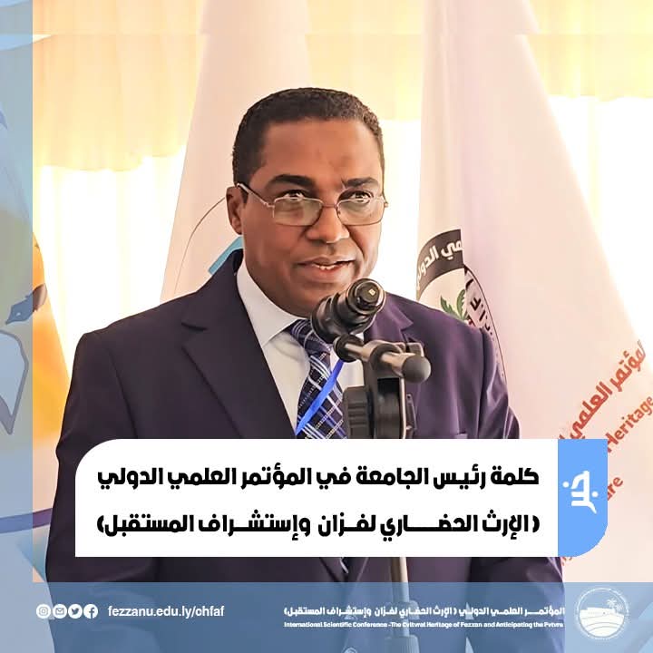 الإرث الحضاري لفزان واستشراف المستقبل شعار مؤتمر علمي دولي بجامعة فزان  الليبية على مدار يومي 25/26 يناير 2024.